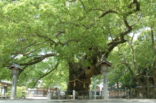 あって見所いっぱい。下の写真はご神木の大楠木。緑の葉がすごく