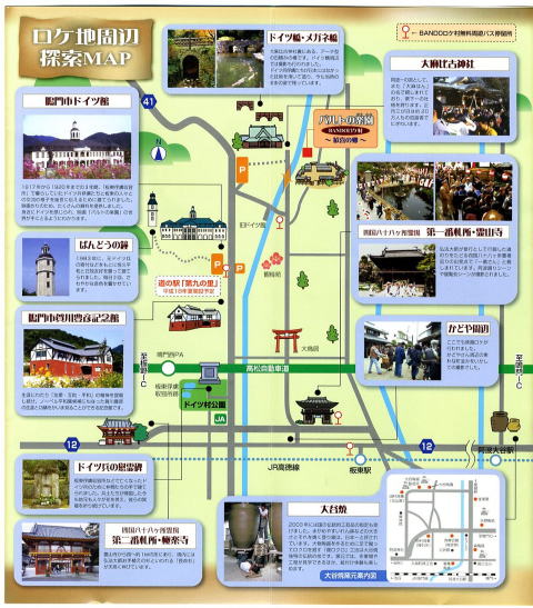 近くにはドイツ館、1番札所の霊仙寺、大麻比古神社(左)などが