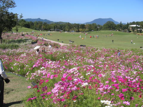 さすがに国営というだけあってひじょうに手入れの行き届いたきれいな公園で、秋桜もちょうど