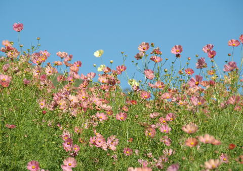 秋晴れの青い空と秋桜のさわやかな風景を、少しでも感じていただければ幸いです。